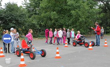 Praktická časť bola zaujímavejšia. Bicykle, motokáry ožili v rukách malých vodičov. Mnohí však nevedeli uplatniť vedomosti z teoretickej časti do praktickej. Značka „ STOP, “ dala zabrať viacerým deťom, a tak po porušení predpisov cestnej premávky museli odložiť dopravné prostriedky a naučiť sa dopravné značky ako chodci. Keď to zvládli, vrátili sa späť na svoje dopravné prostriedky.